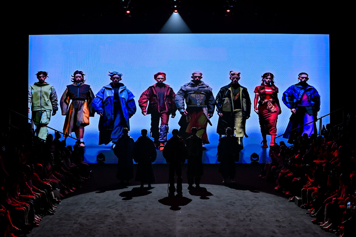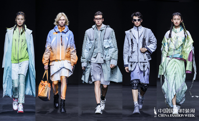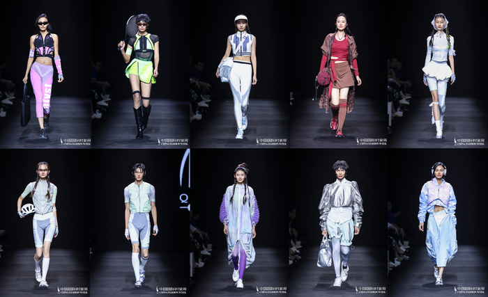 三是荣膺世界精英模特大赛全球总冠军、中国职业模特大赛十佳模特、中国十佳职业时装模特、IMC上海国际模特大赛冠军等荣誉称号的国际超模和国内知名演员张逗逗登上 T 台,展示获奖作品——云手方程式、形变之域、向野而生、漠野灵踪等系列。秀场以激光切割打造未来感空间,水雾弥漫流动,真实模特与数字模特穿行于虚实之中,将纤维面料的独特特性与运动美学的先锋姿态完美结合,为观众带来一场震撼的视觉盛宴。