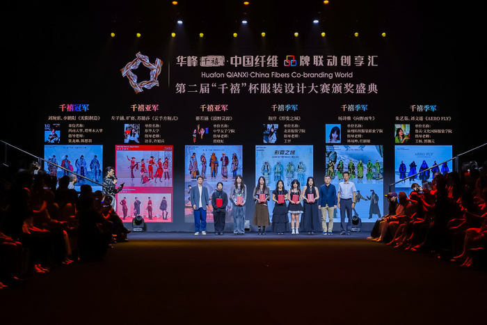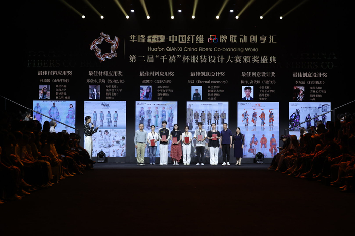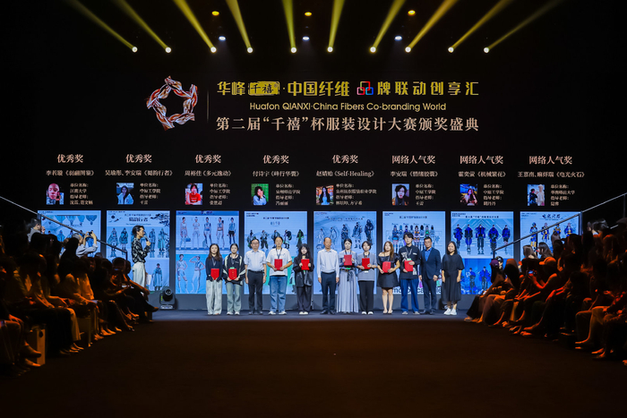为进一步打通纤维与终端服装的连接,凸显纤维材料在时尚设计中的核心价值,发布会同期举行了第二届“千禧”杯服装设计大赛颁奖仪式。奖项包括千禧冠军1名、千禧亚军2名、千禧季军3名、最佳材料应用作品3名、最佳创意设计作品3名和优秀作品5名。